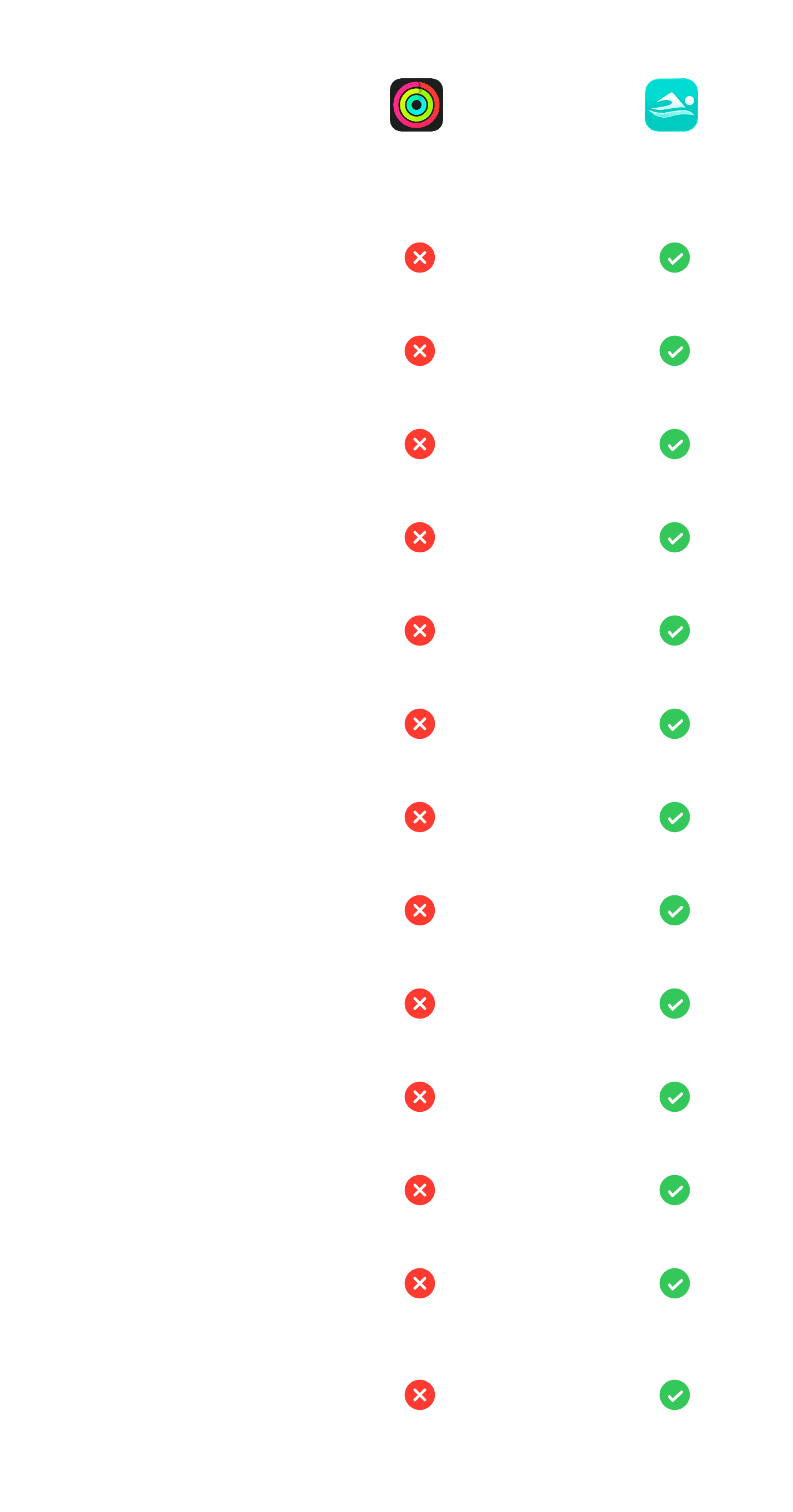The Fitness App doesn’t provide optimized swim data visualization. Dedicated swim apps (e.g., SwimNow) are recommended for enthusiasts.